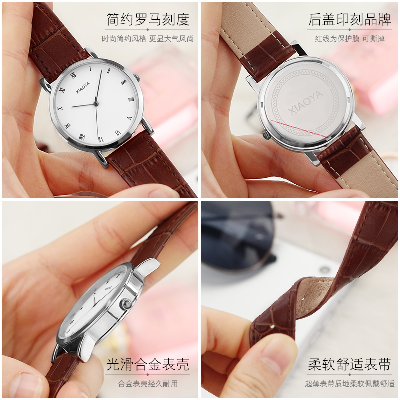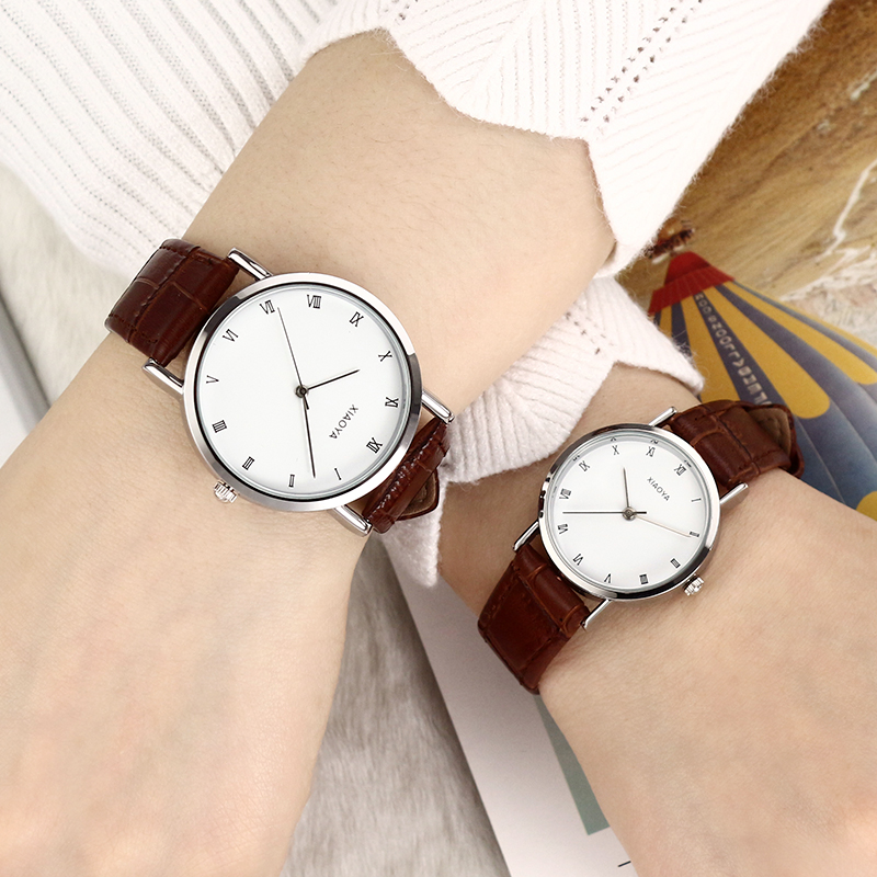 韓國時尚潮流手表女學生韓版簡約休閑皮帶男表大氣石英表情侶手表