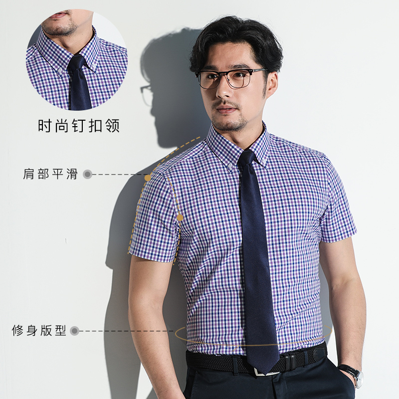/ 春季格子襯衫男短袖寸衫純棉免燙修身韓版潮流帥氣男士襯衣青年
