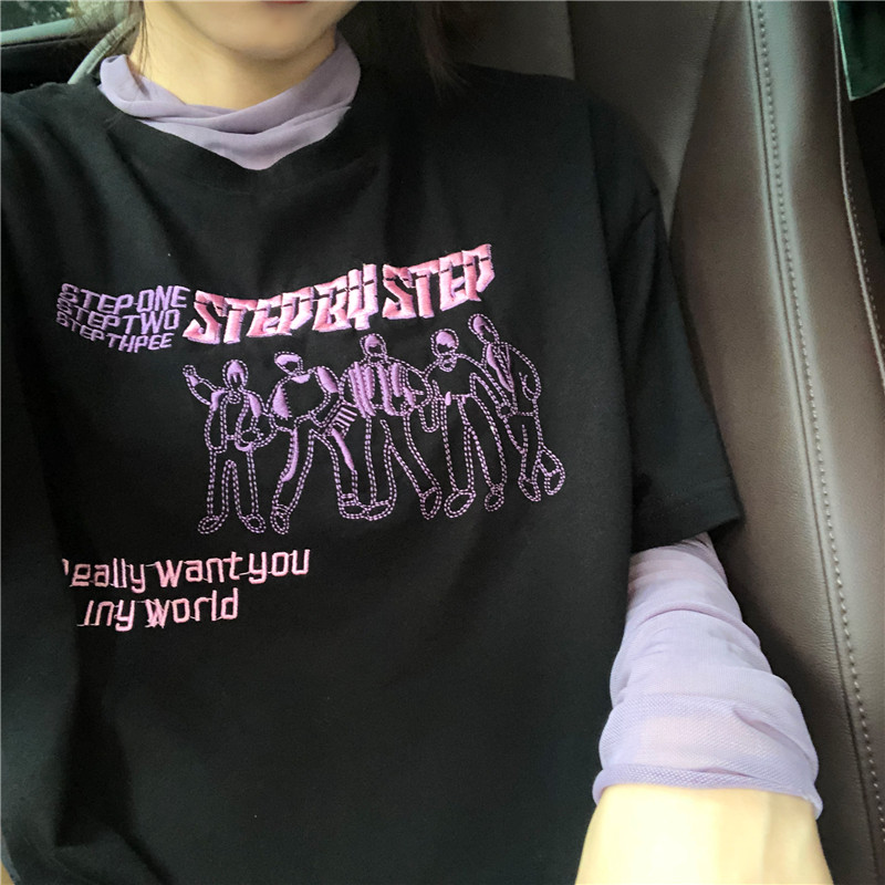 馨幫幫/吵吵家港味刺繡超火cec潮牌歐貨古著感少女t恤+網紗打底衫