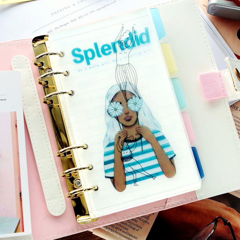 云木雜貨 6孔彩色插畫手賬分隔板 A6A5分隔頁磨砂活頁手賬隔頁板