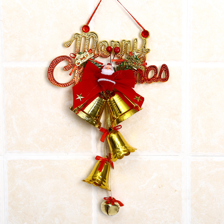 / 圣誕節裝飾用品 圣誕老人鈴鐺門掛件 圣誕樹字牌蝴蝶結l鈴鐺掛飾
