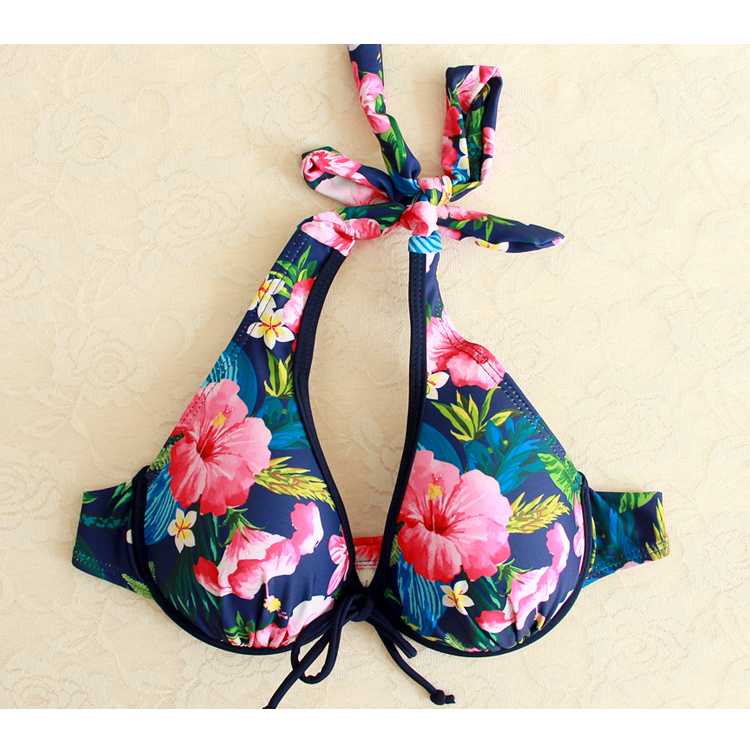 / 韓國泳衣花卉印花中袖防曬罩衫比基尼三件套小胸聚攏海邊度假泳裝