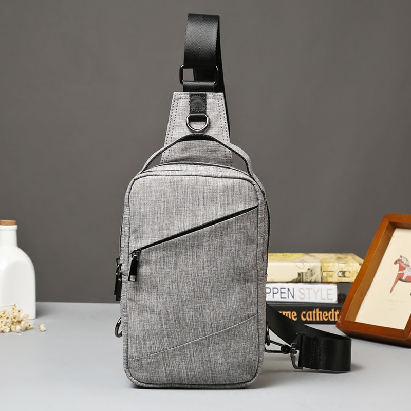 灰色男士胸包韓版潮流包斜挎包文藝牛津帆布男包單肩包腰包背包