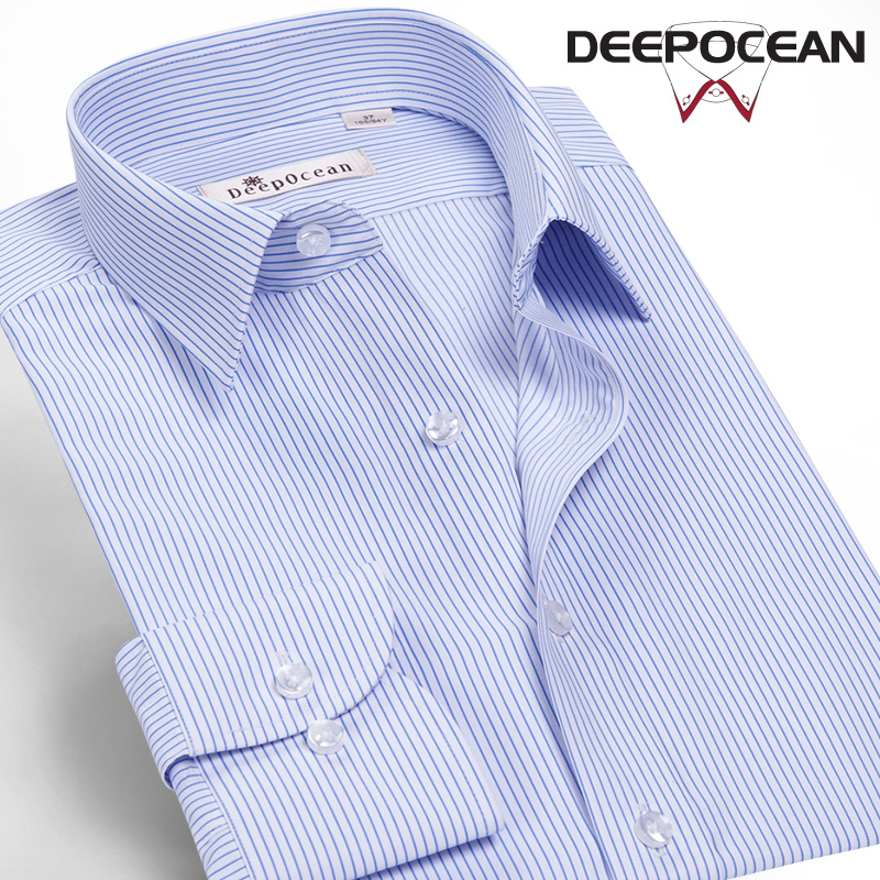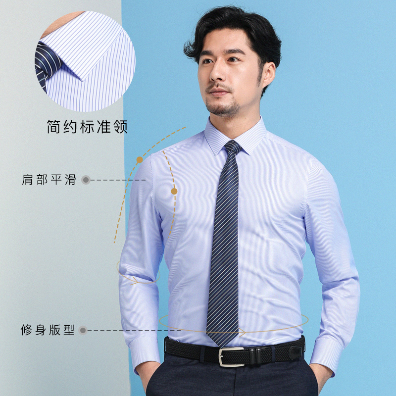/ 薄款冰絲免燙抗皺襯衫男藍白條紋襯衣長袖男士寸商務休閑韓版修身