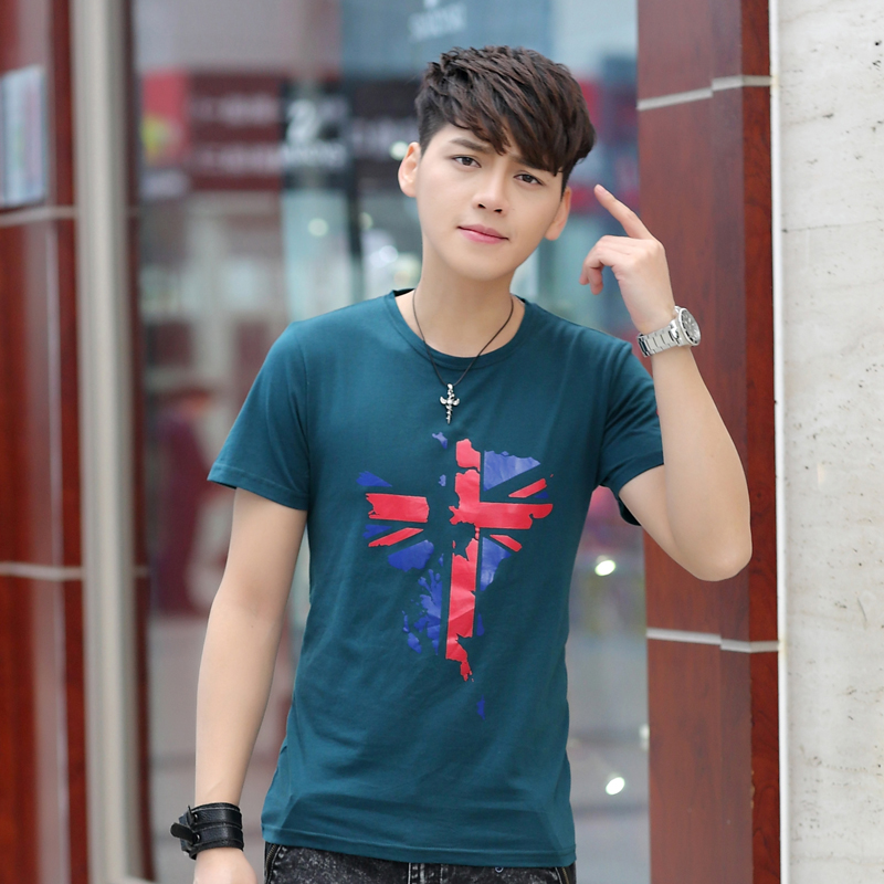 2016夏季新款男士純棉短袖T恤圓領修身印花半袖男裝上衣服體桖