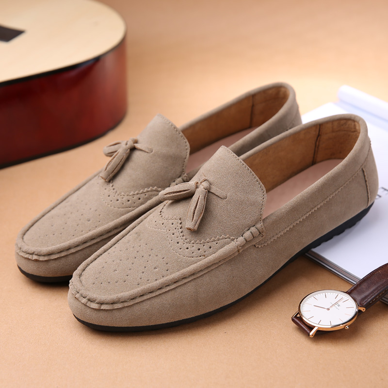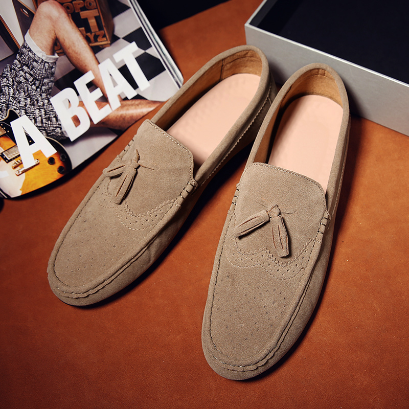 / 春季新款韓版潮流男鞋子百搭休閑鞋復古布洛克駕車豆豆鞋男潮鞋