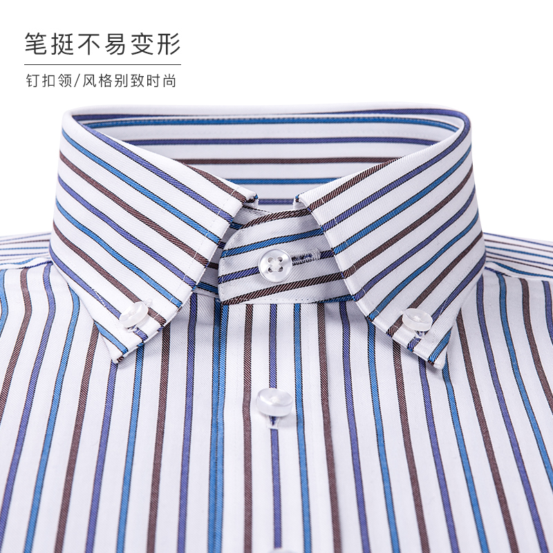 秋季條紋襯衫男長袖寸衫純棉免燙修身韓版潮流帥氣男士襯衣青年