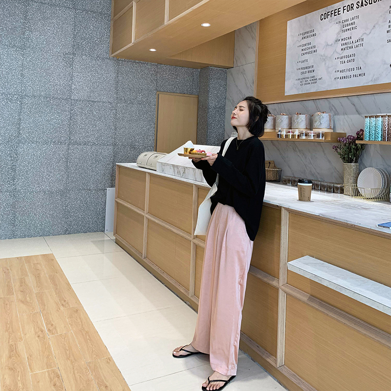 A7seven直筒褲女2019春夏裝緞面絲滑韓版寬松顯瘦高腰休閑長褲子