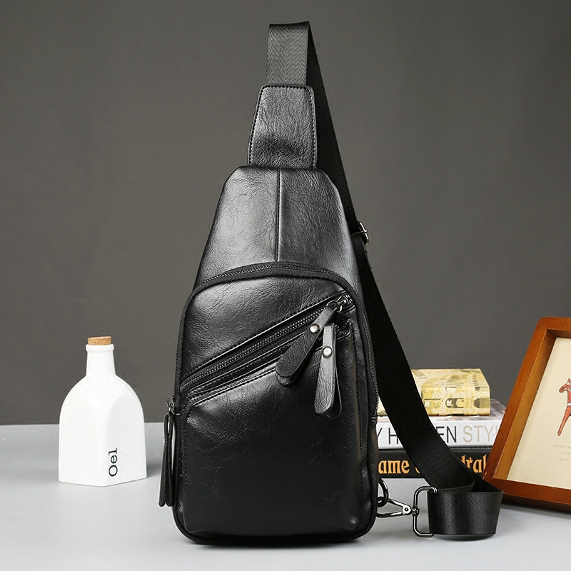 / 潮流男士胸包時尚男士腰包皮質單肩包男式休閑后背包騎行包小挎包