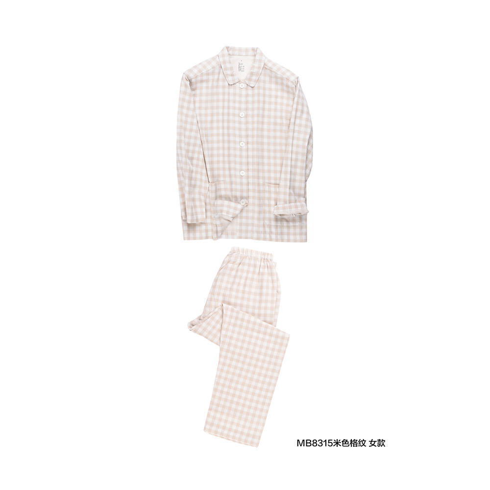 良品經典格紋全棉雙層紗家居服套裝 簡約自然居家服 舒適透氣