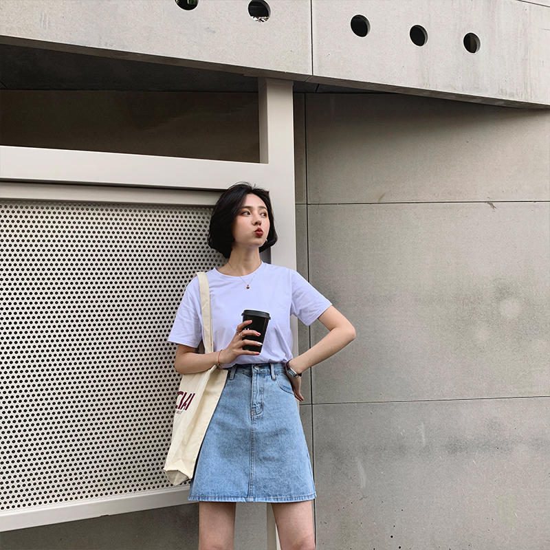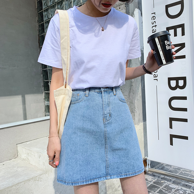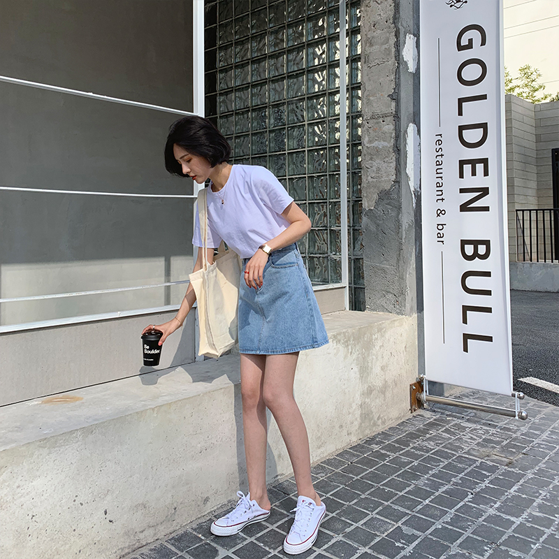 A7seven牛仔裙女2019春夏裝新款韓版高腰顯瘦A字純色百搭半身短裙