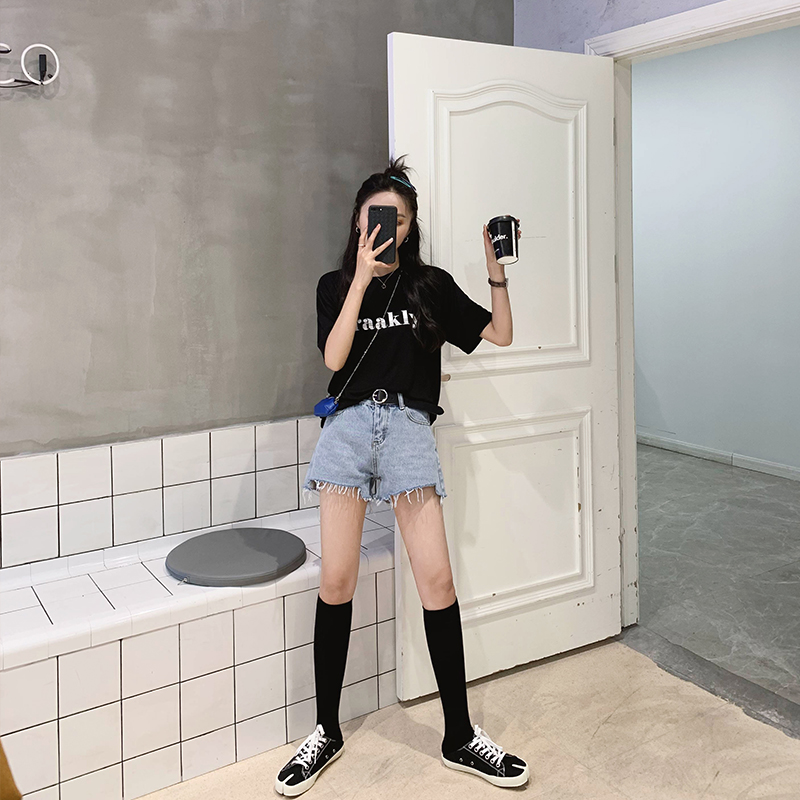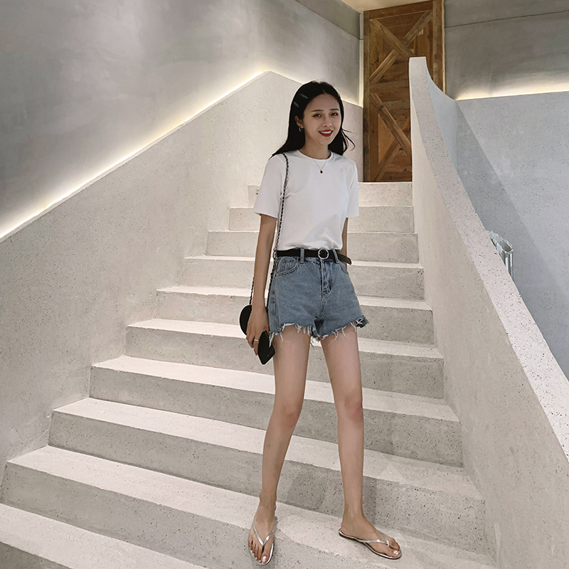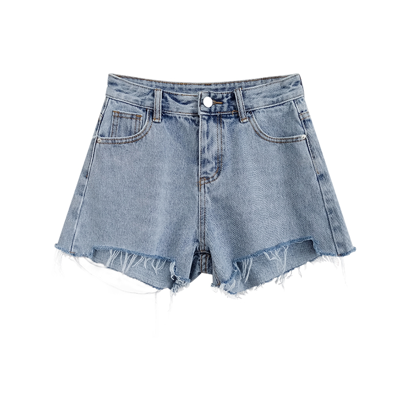 A7seven毛邊牛仔短褲女春夏裝韓版顯瘦剪破高腰闊腿學生百搭短褲