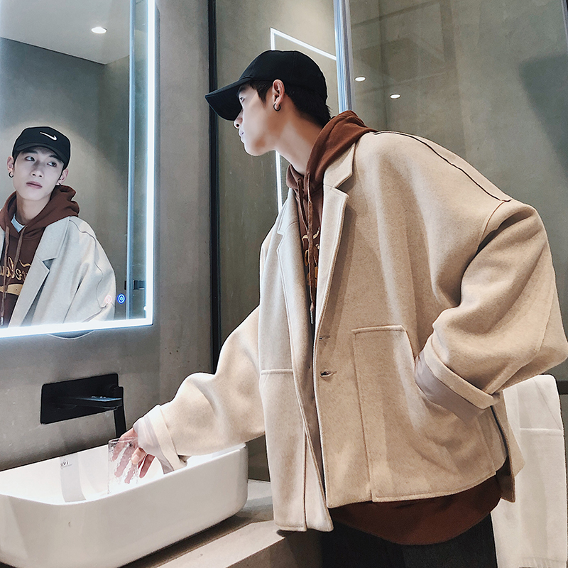 / 文藝男女店短款男士毛呢大衣潮流寬松風衣秋冬季韓版外套情侶衣服