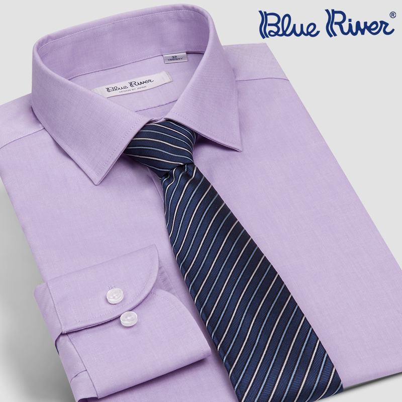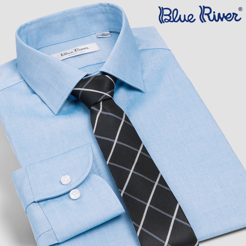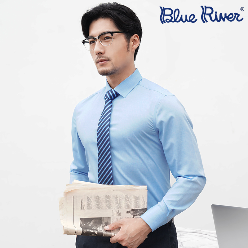 藍河2018秋季新品純棉牛津紡襯衫男士長袖襯衣商務純色正裝韓版寸