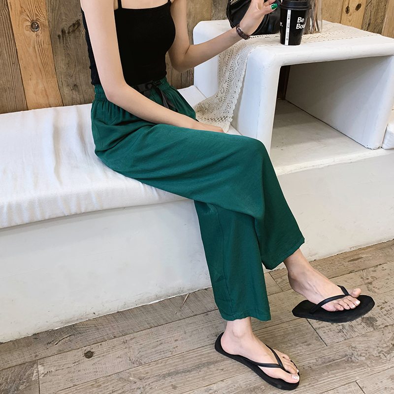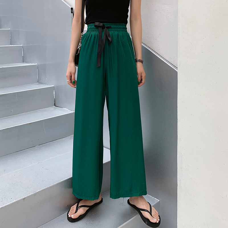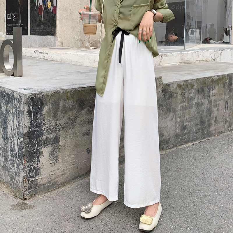 A7seven直筒褲女夏季系帶黑色韓版寬松顯瘦高腰垂感休閑學生長褲
