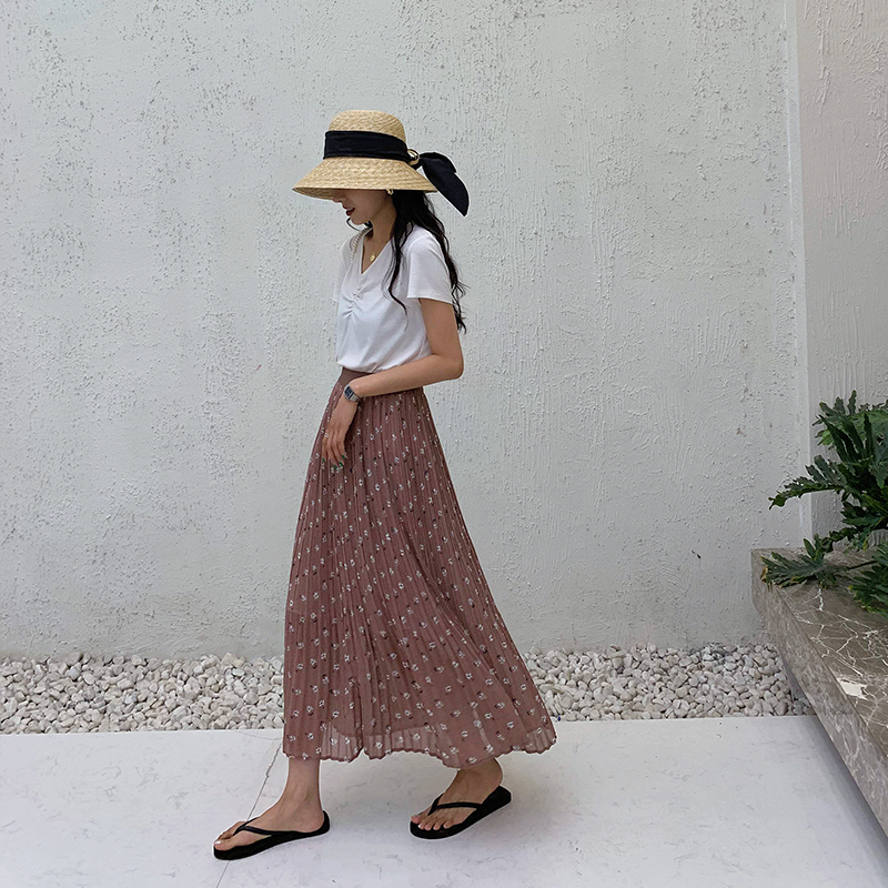 這條雪紡的碎花百褶半身裙真的chao仙氣