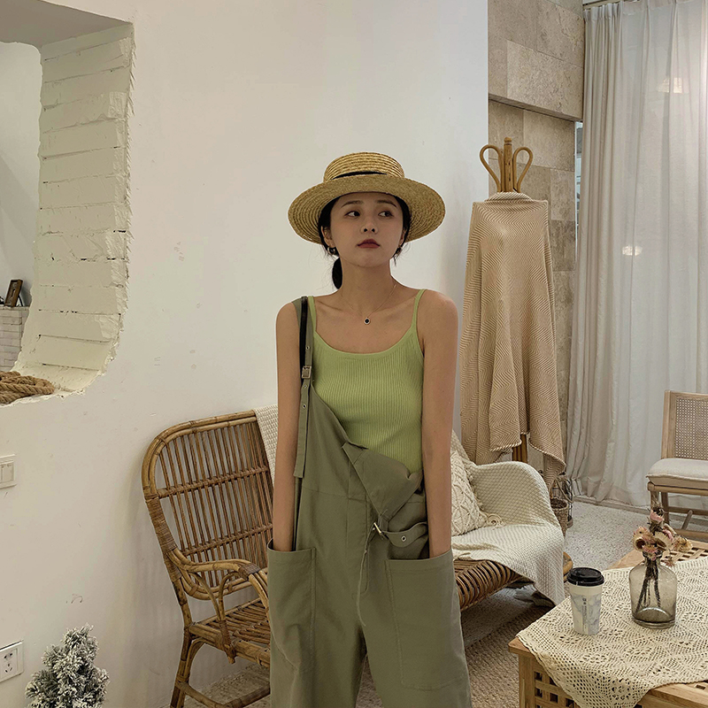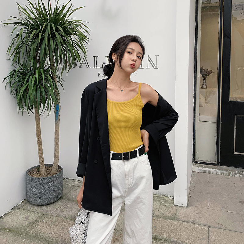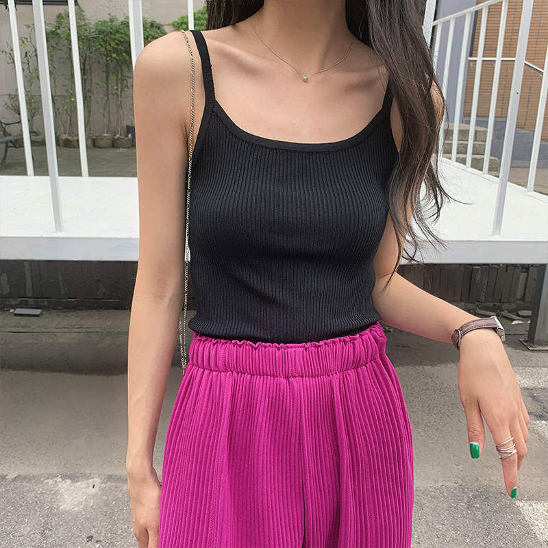 A7seven針織吊帶女春夏裝韓版修身內搭白色無袖外穿打底上衣背心