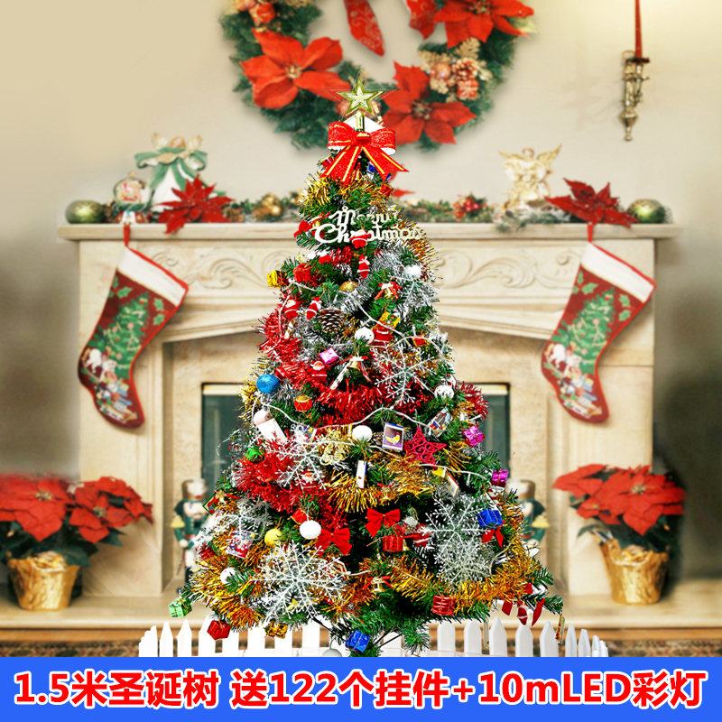 / 圣誕節裝飾品 1.5米圣誕樹套餐10米LED彩燈豪華加密含飾品圣誕樹
