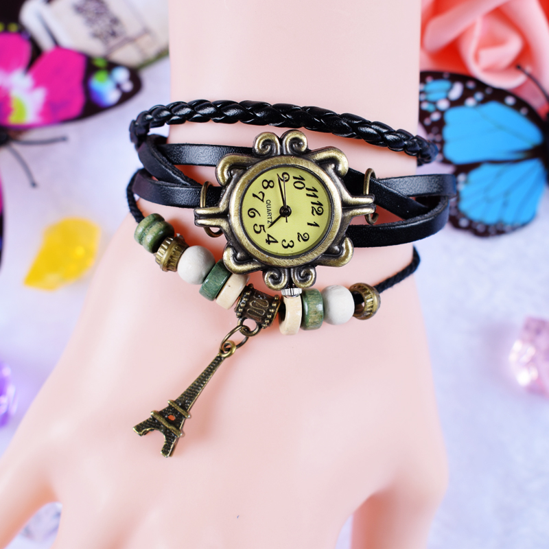 手鏈手表 男學生韓版簡約纏繞潮流時尚女學生休閑復古大氣石英表