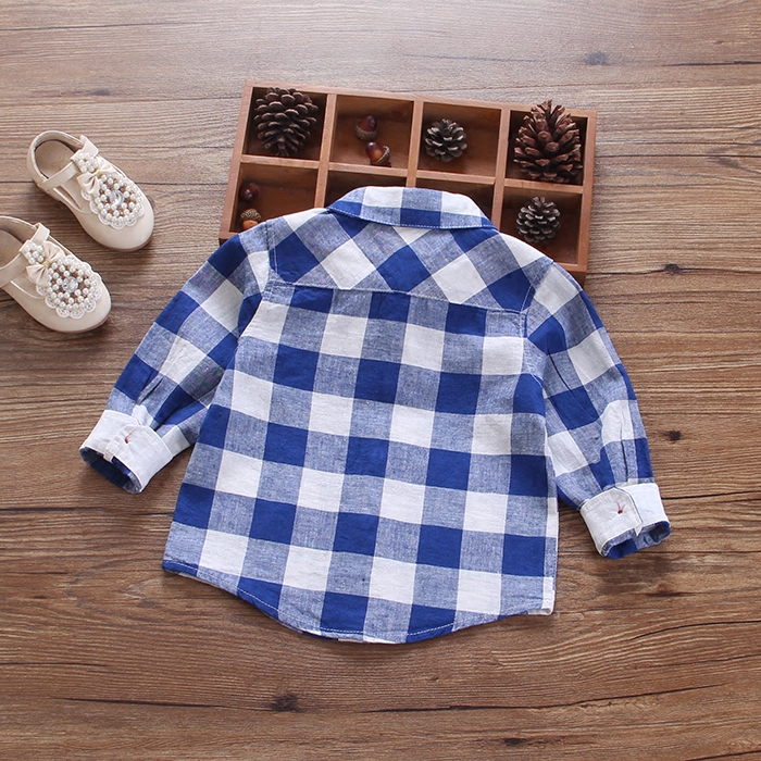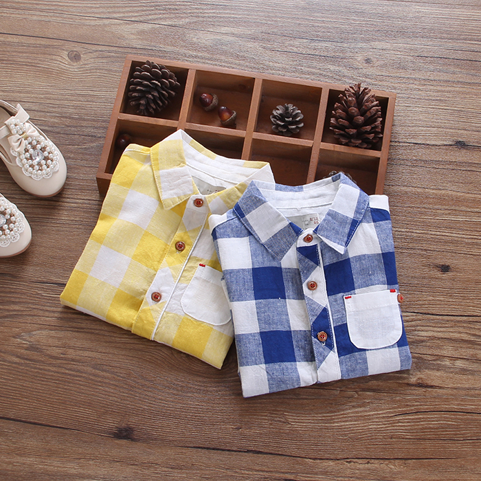女童春裝新款嬰兒襯衫寶寶純棉襯衣翻領格子春秋長袖百搭上衣