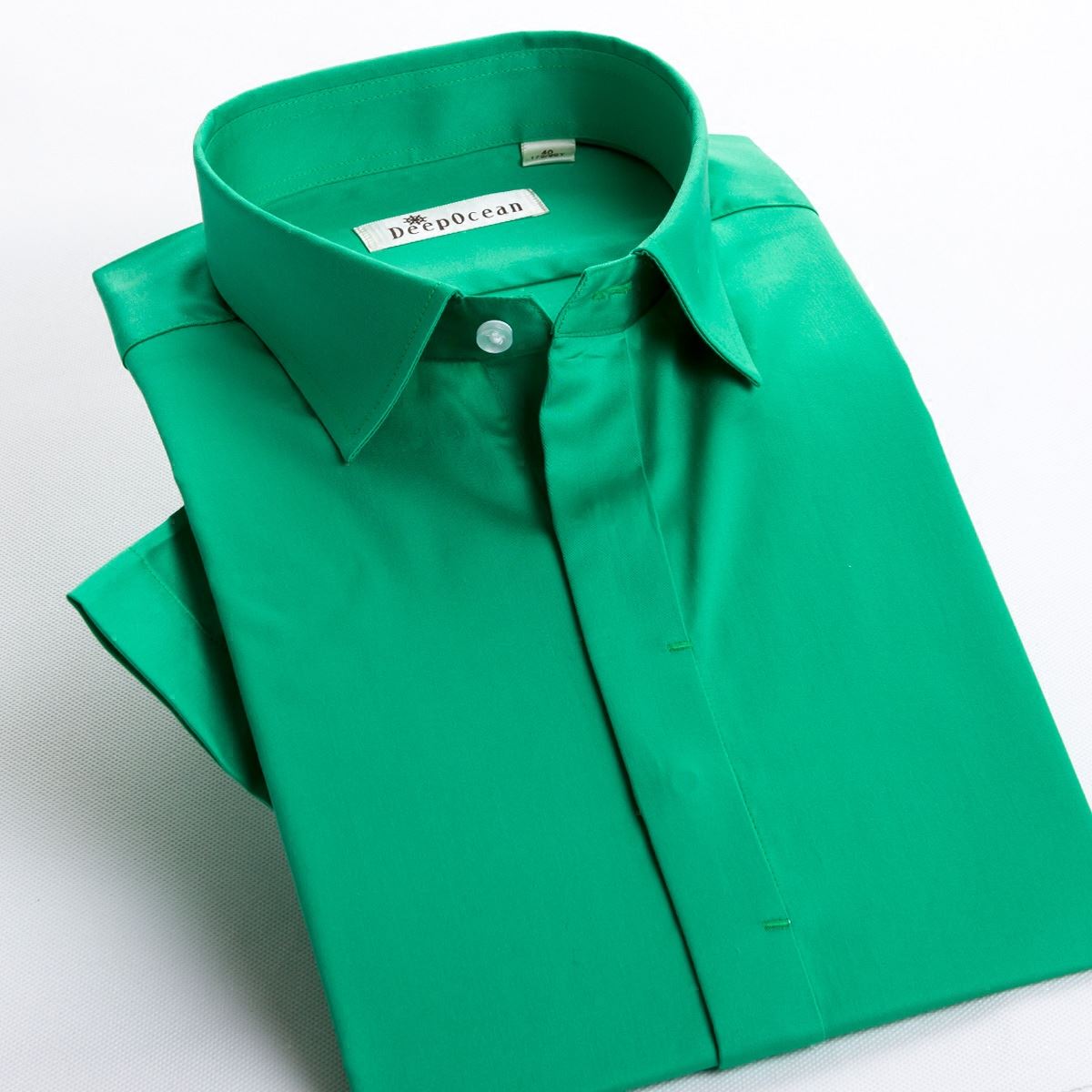 / 夏季新款雙絲光棉短袖糖果色大碼男士潮人襯衫綠色男裝薄正裝襯衣