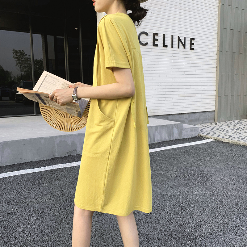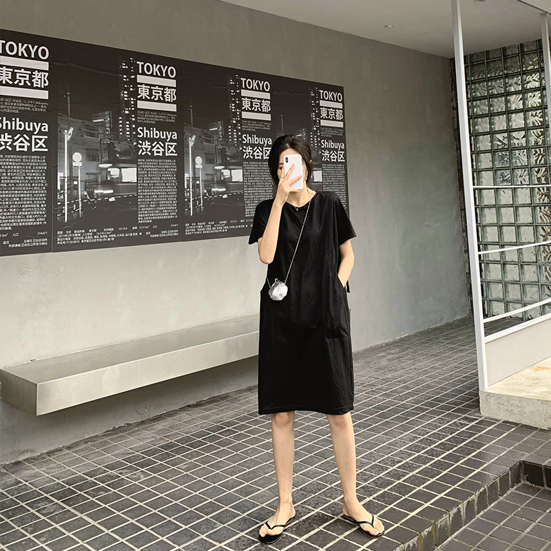 A7seven短袖T恤連衣裙女春夏裝韓版顯瘦圓領中長款白色套頭體恤裙