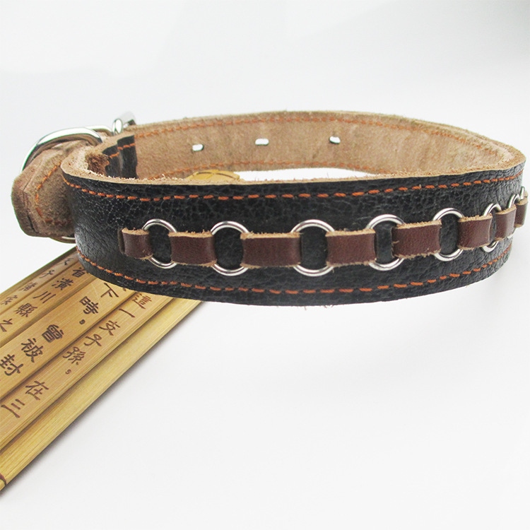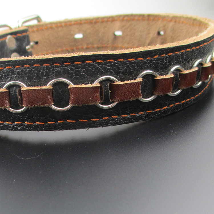 魯寵 手編牛皮項圈 編花項圈 牛皮穿花項圈時尚牛皮脖套小狗脖套