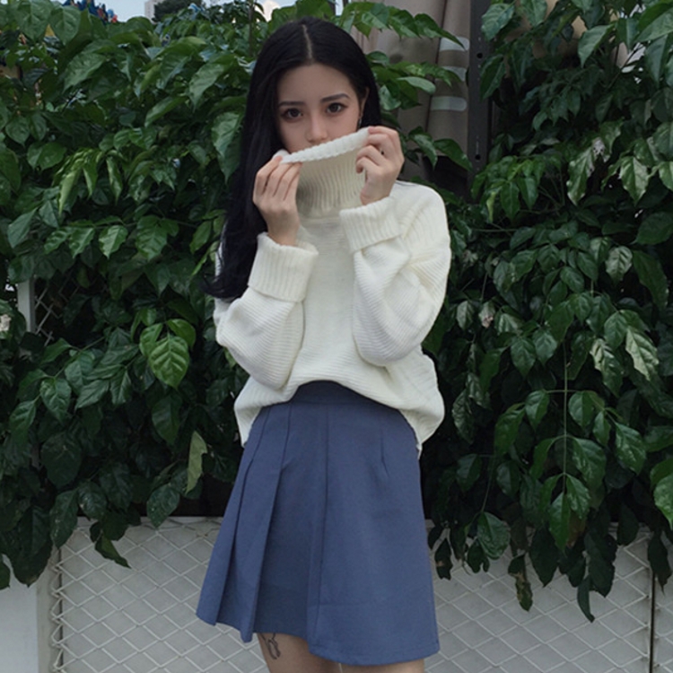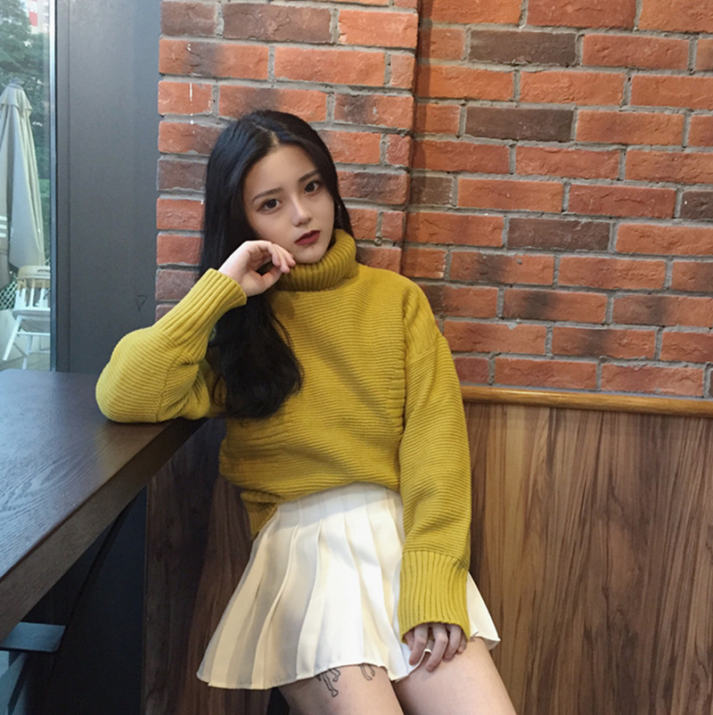 韓國chic風寬松冬款加厚長袖高領純色針織套頭毛衣女學生上衣