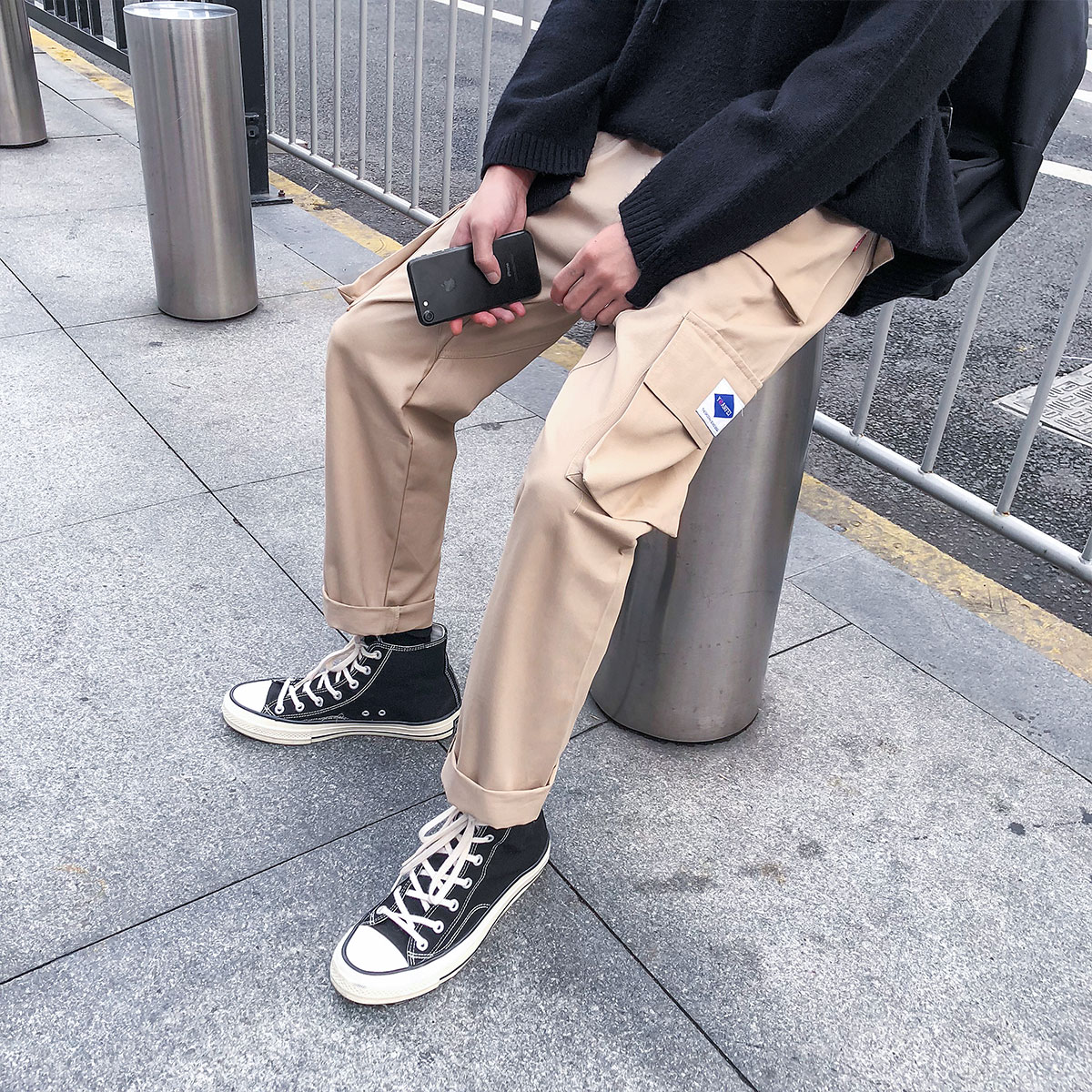 文藝男女店秋季新款潮流男士休閑褲韓版寬松工裝褲九分直筒褲男褲