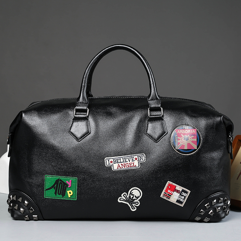/ 鉚釘徽章新款旅行男包韓版男包手提單肩男包大容量行李包出差包
