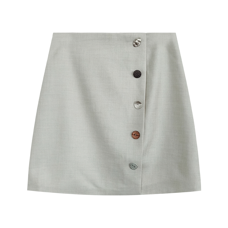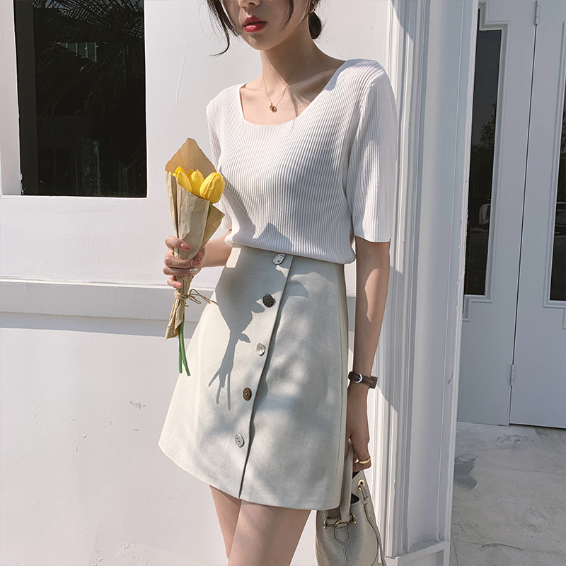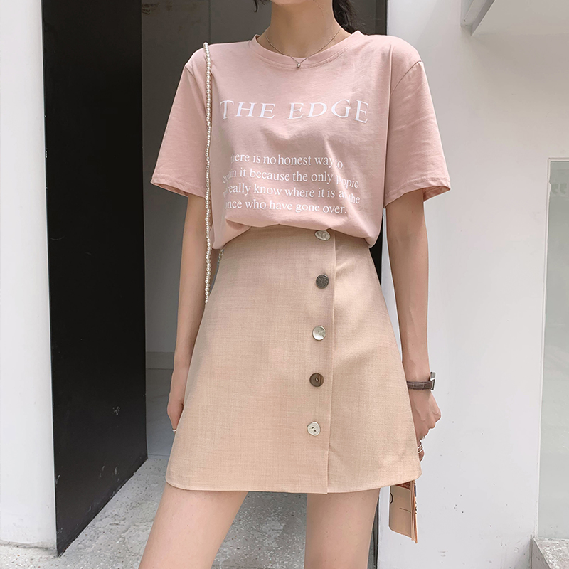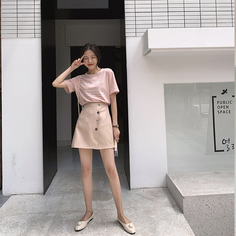 A7seven半身裙女2019夏裝新款排扣韓版高腰顯瘦純色包臀裙A字短裙