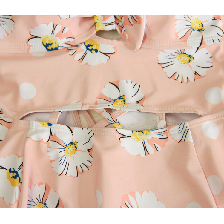 韓國小清新花朵印花蝴蝶結顯胸聚攏性感露背連體裙式溫泉游泳衣女