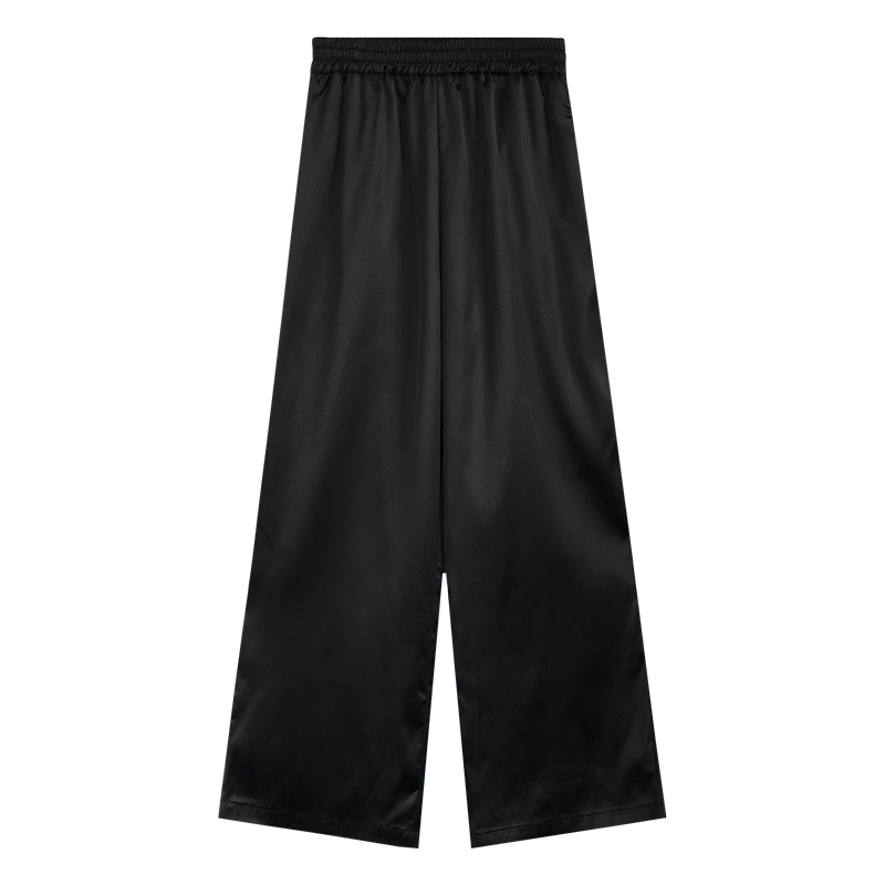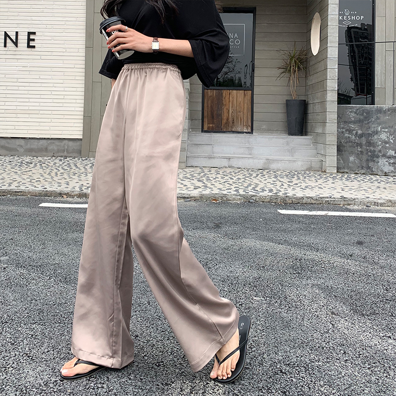 A7seven闊腿褲女緞面墜感春夏新款韓版高腰顯瘦黑色垂感拖地長褲