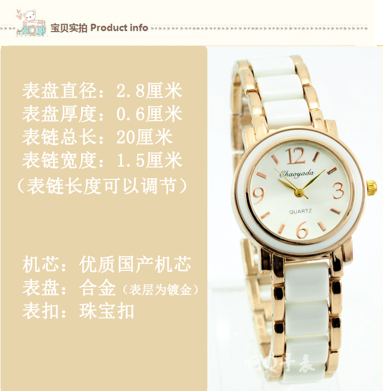 • 手表女款石英表韓國潮流時尚防瓷白色正品韓版中學生女表休閑表