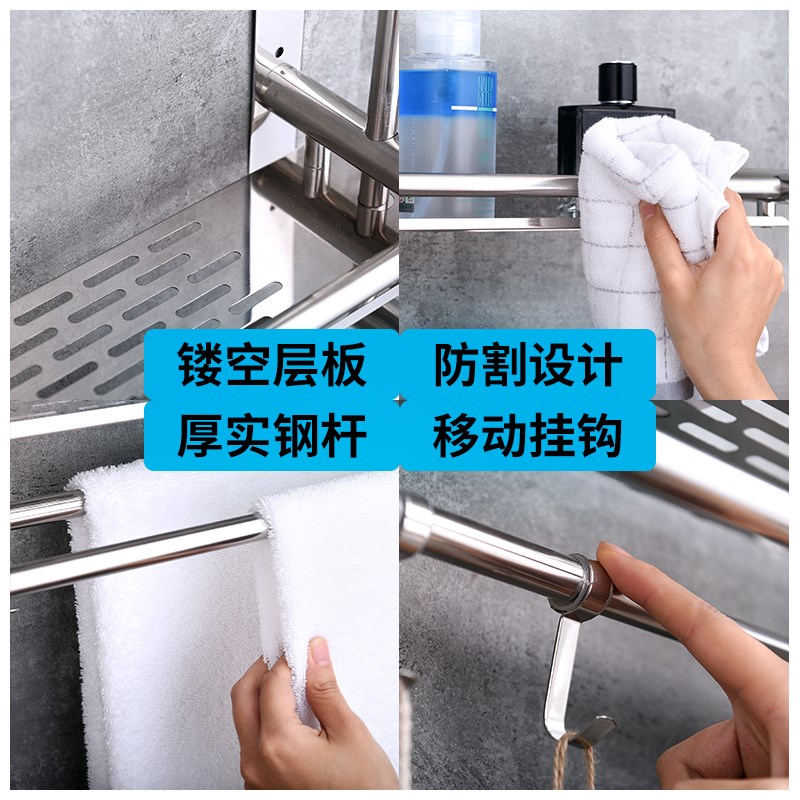 / 衛生間置物架壁掛浴室雙層毛巾架免打孔不銹鋼廁所洗漱臺衛浴掛件