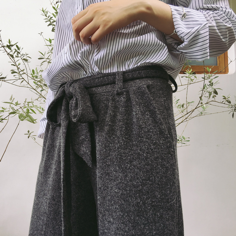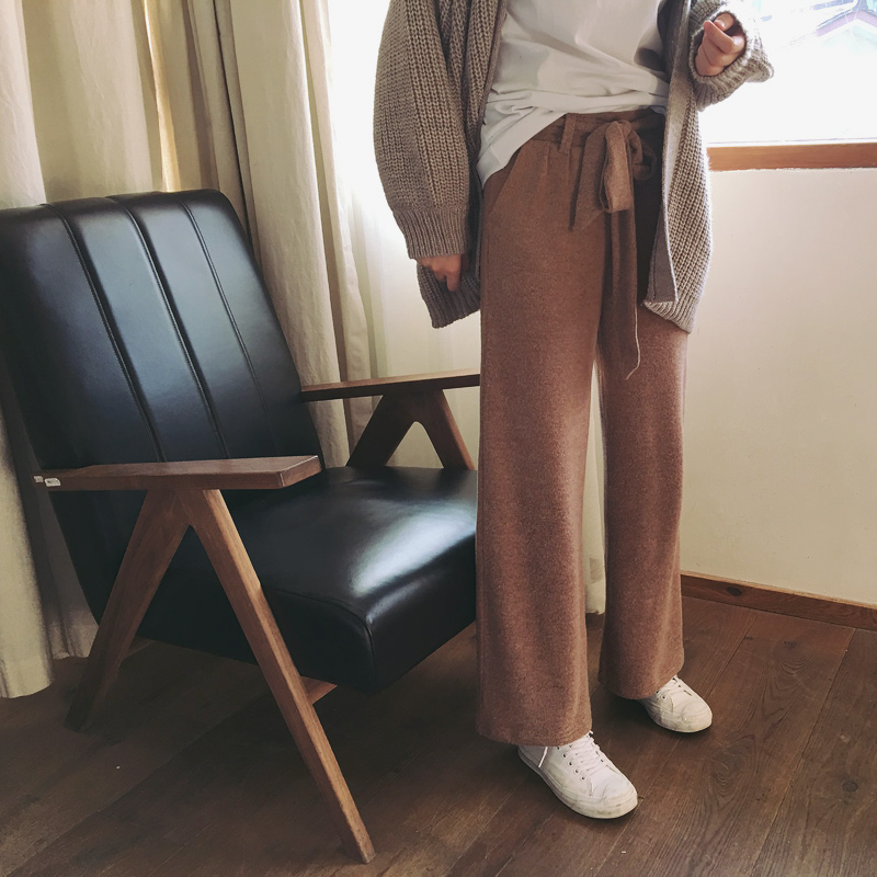 秋冬韓版松緊腰綁帶慵懶風寬松顯瘦休閑長褲闊腿褲休閑褲女