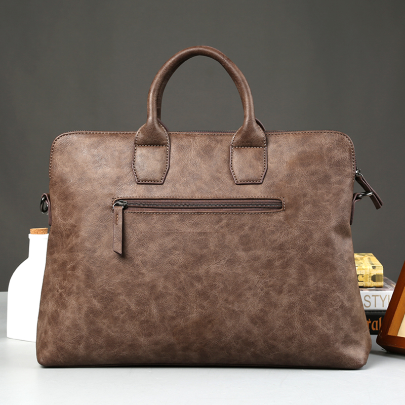 復古瘋馬PU皮韓版男士手提包潮流商務男文件包公文包多拉鏈單肩包