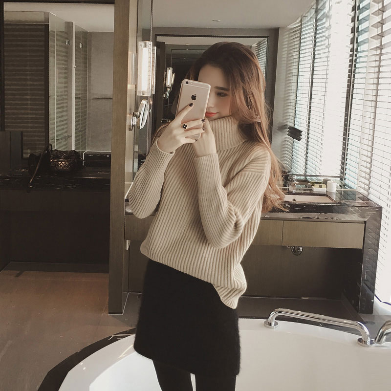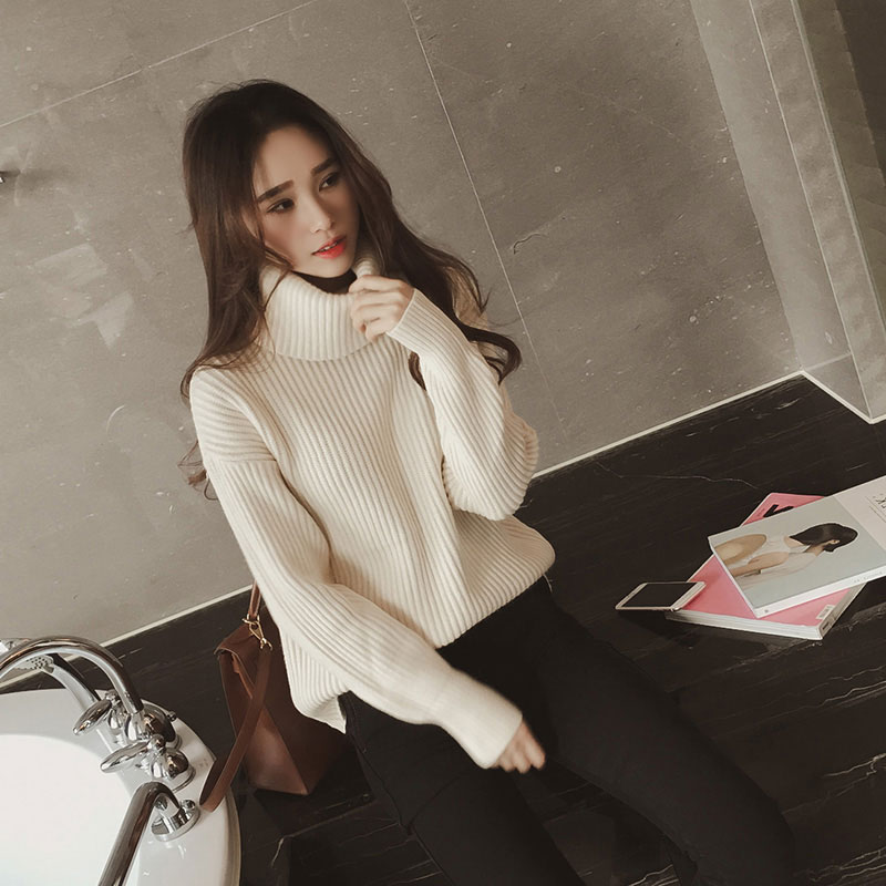 / 秋冬季時尚新款韓版高領毛衣女寬松百搭套頭純色短款打底針織衫潮