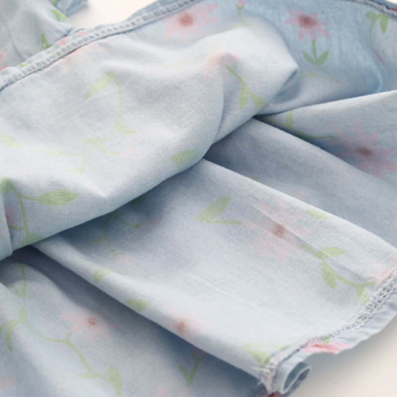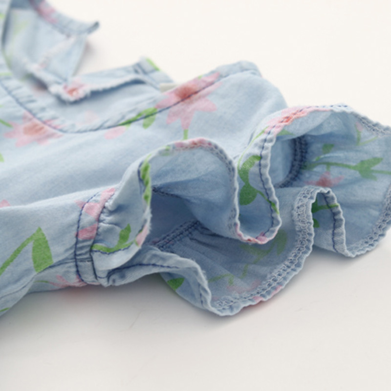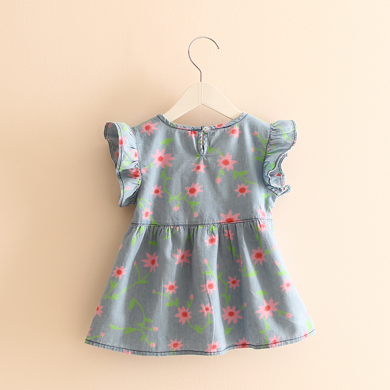 / 兒童牛仔娃娃衫 夏裝韓版新款女童童裝花朵飛袖T恤tx-5867