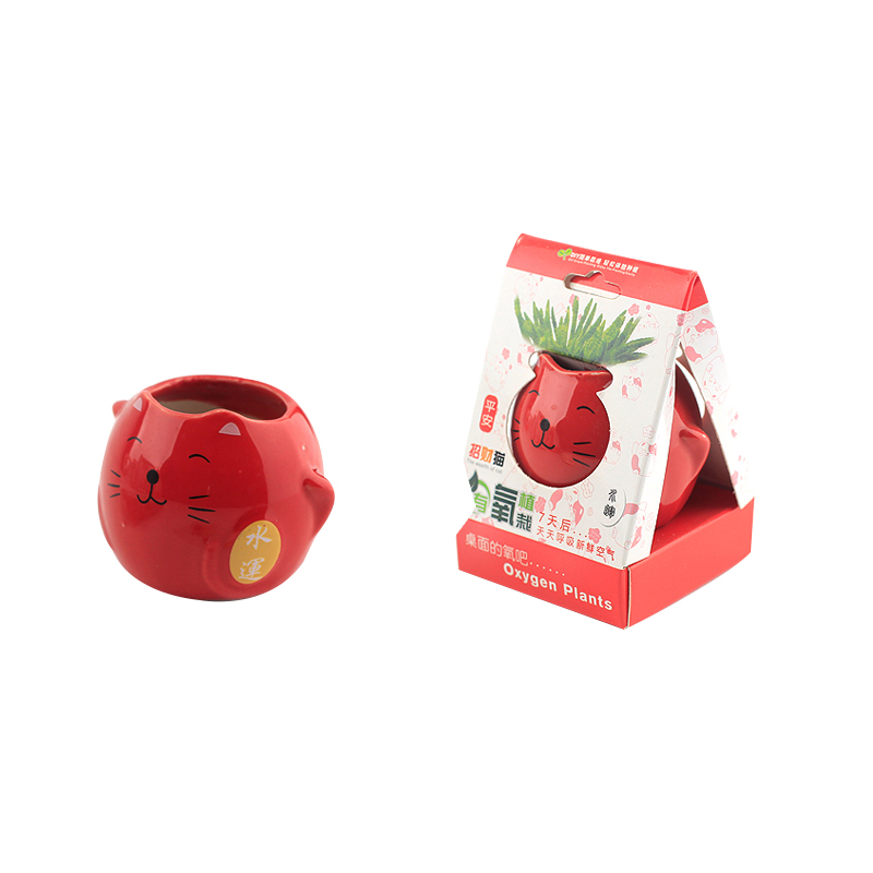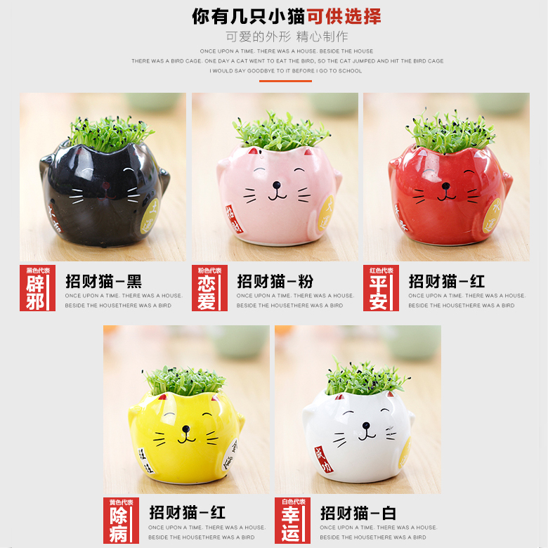 云木雜貨 創意招財貓植物盆栽 平安辦公桌面有氧種植凈化空氣