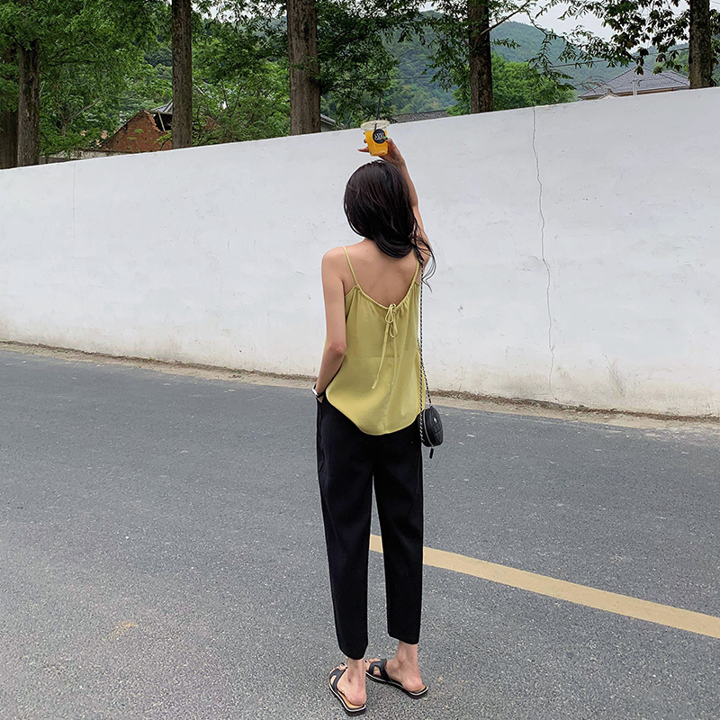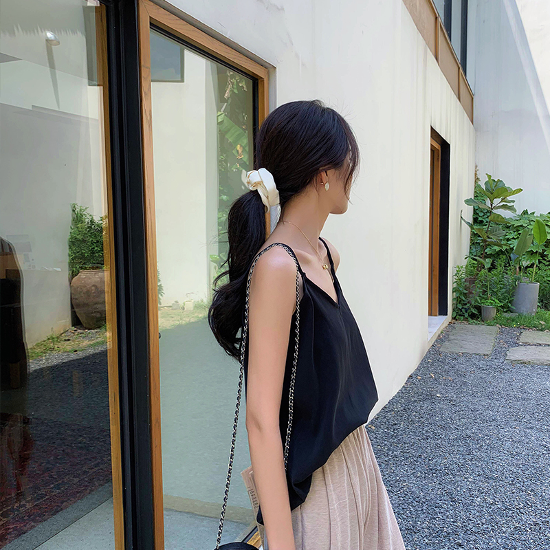 小吊帶的款式 v形的領口 自然露岀精致的鍘骨線條
