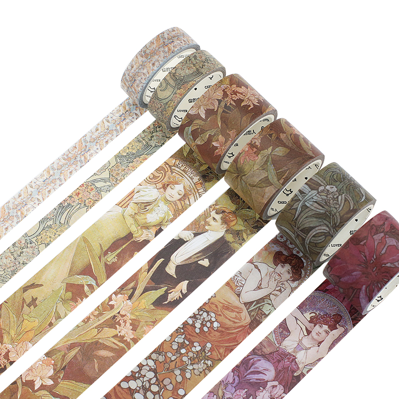 / 云木雜貨 穆夏史詩和紙膠帶復古燙金花人物裝飾手賬日記膠帶貼紙