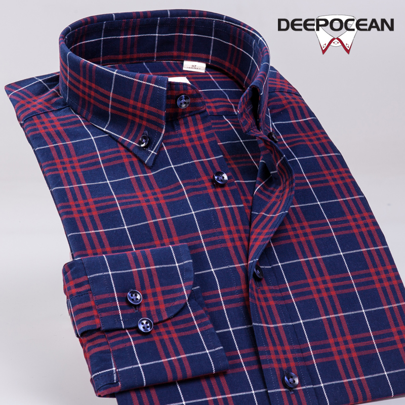 / 秋季新款藍格襯衫男長袖純棉免燙男士襯衣修身韓版潮流時尚休閑