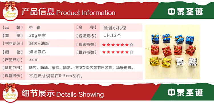 / 圣誕節裝飾品 圣誕小禮包2.5cm3cm圣誕禮包 圣誕樹掛件配件