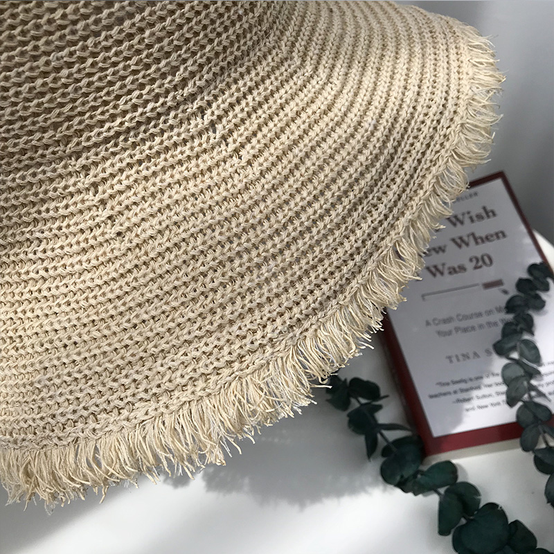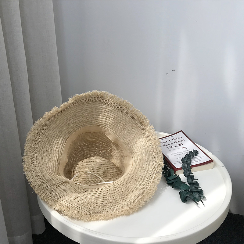 A7seven編織毛邊草帽女春夏圓領逛街海邊沙灘休閑學生防曬漁夫帽