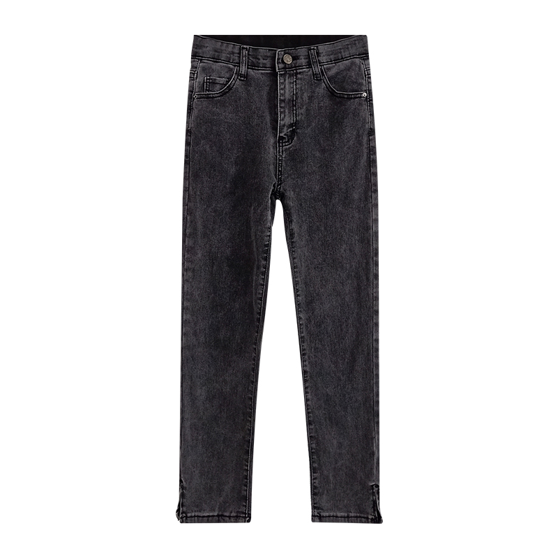 A7seven 牛仔褲女2019春秋裝新款黑灰色直筒韓版開叉顯瘦九分褲子