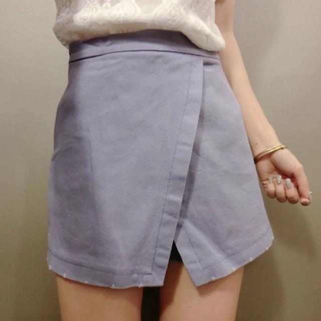 a字高腰短褲女夏季休閑褲子韓版潮修身破洞黑色闊腿褲不規則裙褲