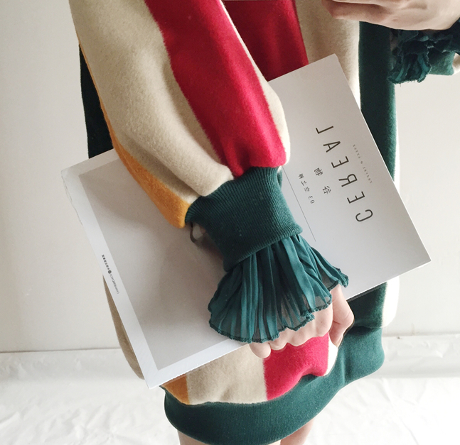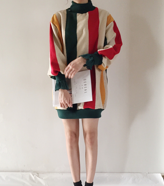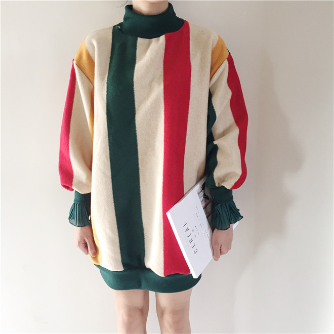 很簡單的大版彩色呢料連衣裙
