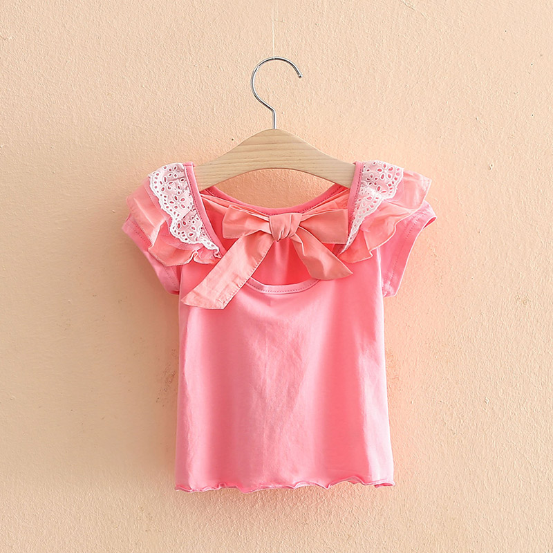 / 寶寶花邊領T恤女 夏裝新款女童童裝 兒童系帶打底衫潮tx-5790