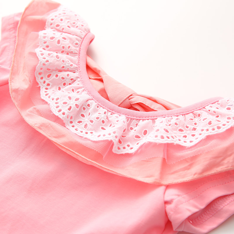 寶寶花邊領T恤女 夏裝新款女童童裝 兒童系帶打底衫潮tx-5790